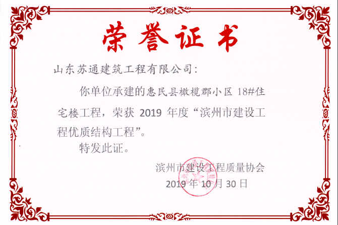 山東蘇通建筑工程有限公司,創建于2009年8月。目前擁有房屋建筑工程施工總承包壹級、市政公用工程施工總承包叁級、水利水電工程施工總承包叁級資質,同時還具有建筑裝修裝飾工程專業承包貳級、消防設施工程專業承包貳級、鋼結構工程專業承包叁級、建筑機電安裝工程專業承包叁級等專業承包資質。 公司總部坐落于山東省濱州市濱城區黃河十二路877號,現有辦公面積約2000平方米,機構設黨支部工會辦公室、總經理辦公室、綜合辦公室、工程管理部、經營預算部、資產財務部、材料設備部、運行管理部、法律事務部等多個職能部門。公司管理體系已經通過了GB/T 19001及GB/T 50430質量管理體系、GB/T 24001環境管理體系(EMS)、GB/T 28001職業健康安全管理體系(OHSMS)等體系的認證。 公司承建完工了濱州市建大教師之家、建大清怡苑、香格里拉水岸綠城住宅小區、雙泰建大城、曲阜崇德公館住宅小區、北海新區御景藍灣住宅小區、沾化德榮國際華城住宅小區、惠民橄欖郡住宅小區等工程項目,目前在建工程項目有:濱州市頤高國際電子商務產業園住宅小區項目、濱州市東盛國際項目、高新區建大中央華府住宅小區項目、濱州市融匯新里程住宅小區項目、濱州市建大秦皇壹號住宅小區項目、濱州市森林花...